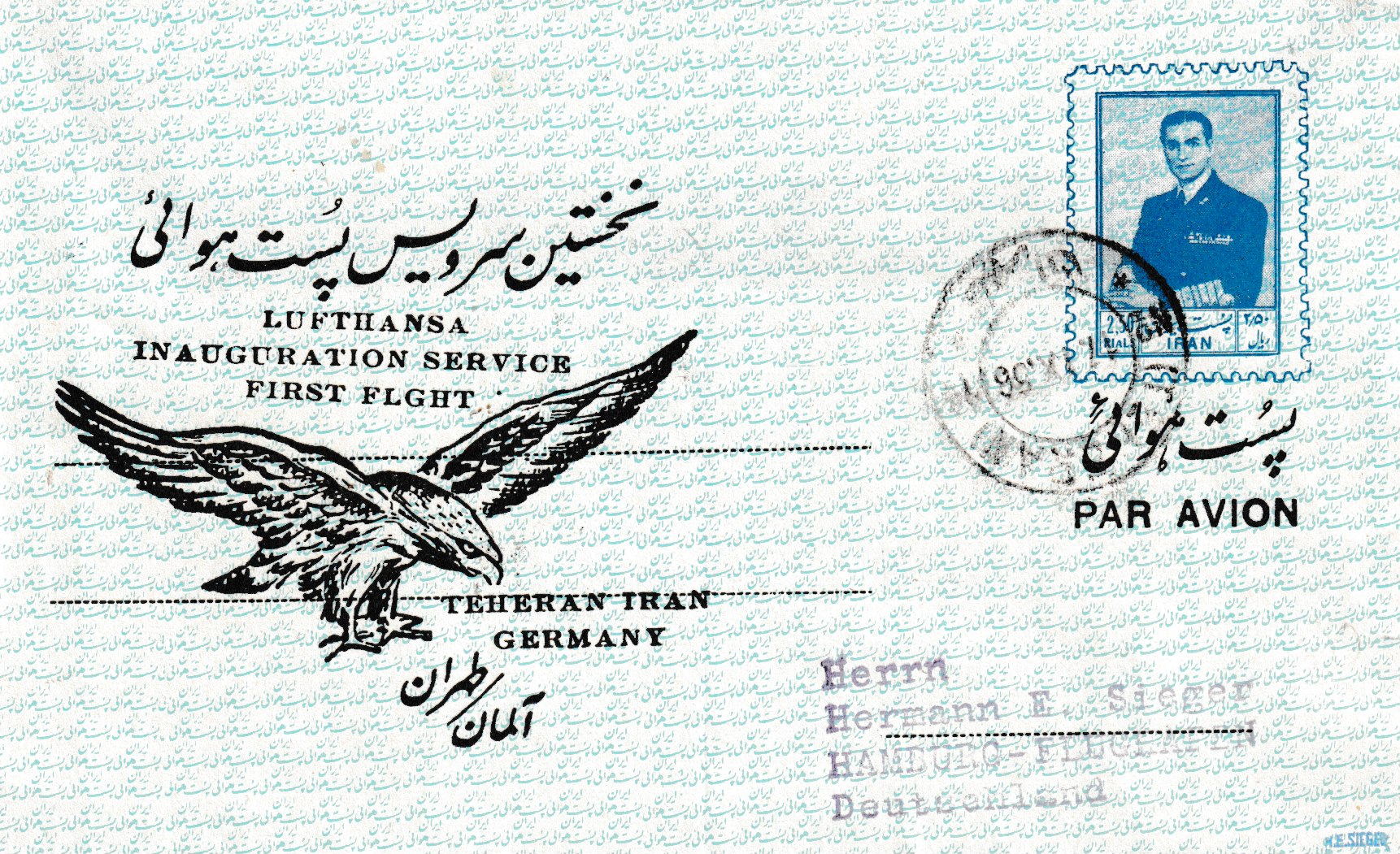 | Ersteflug der Lufthansa von Teheran nach Hamburg Adressiert an Herrn Hermann Sieger Hamburg - Flughafen