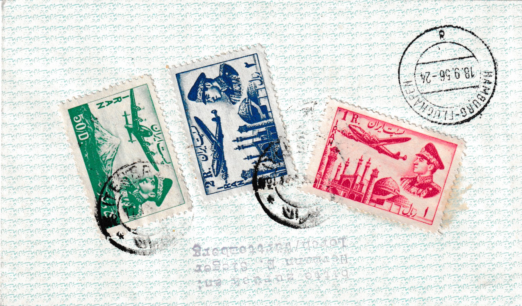 Rückseite des Umschlages, aufgegeben in Teheran, portogerecht frankiert