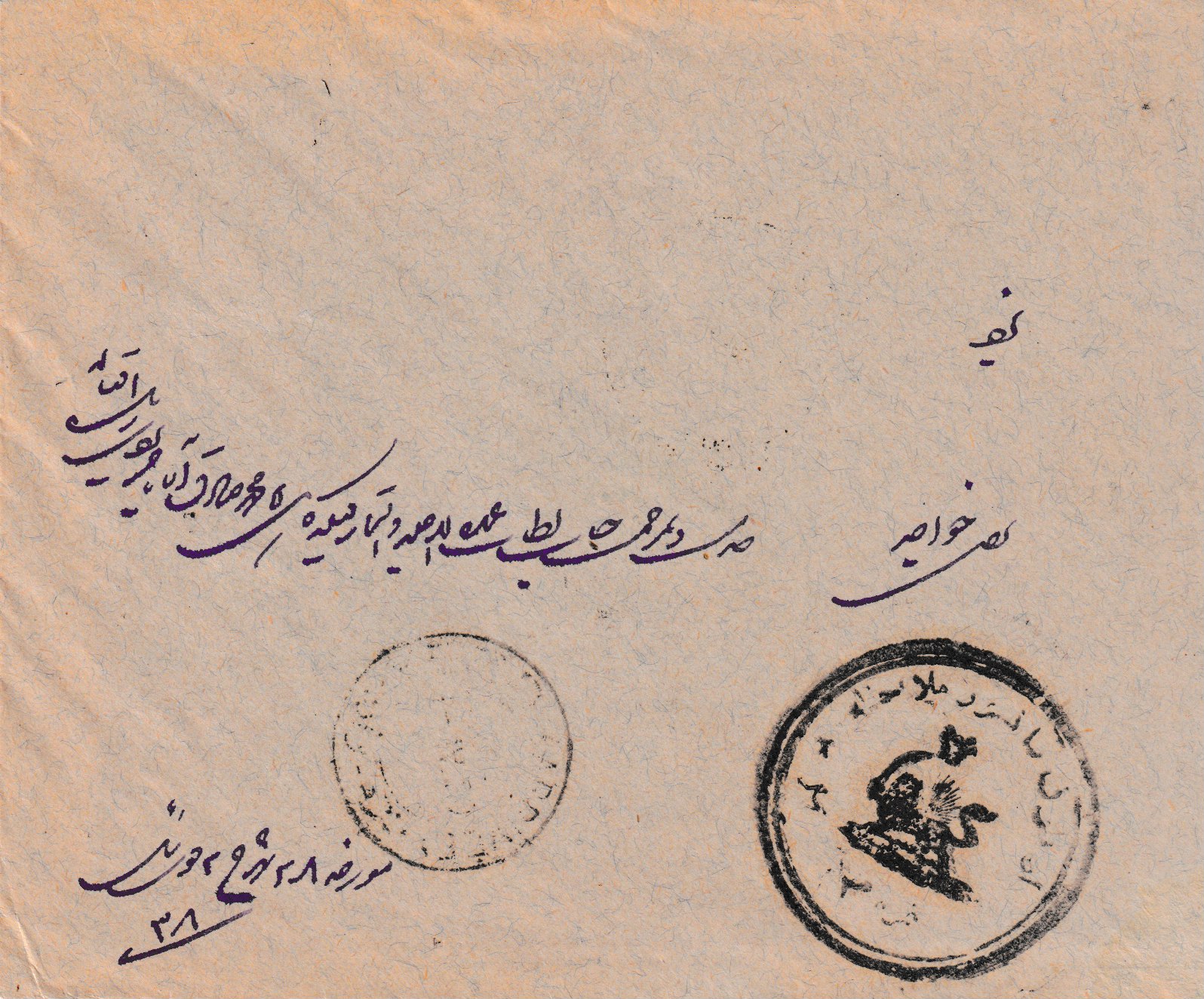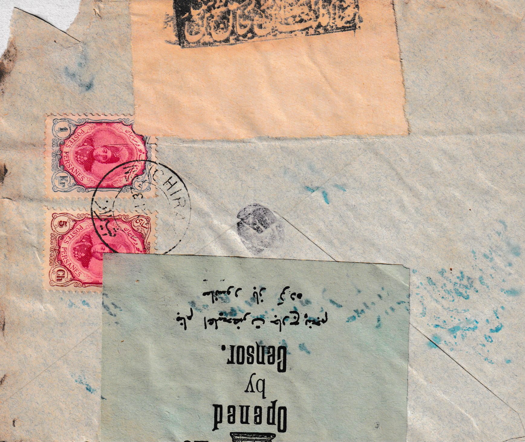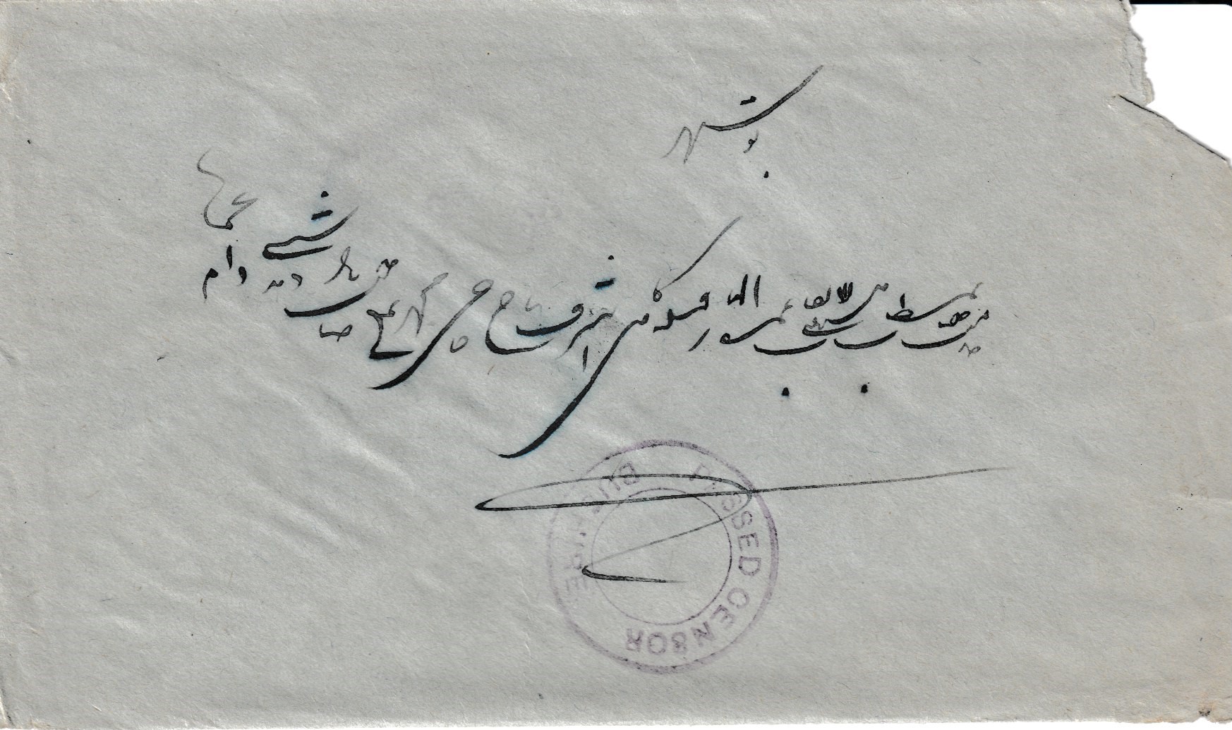 | Inlandbrief von Chiraz nach Buschir, Postdatum nicht lesbar, wurde in Borazjan zensiert