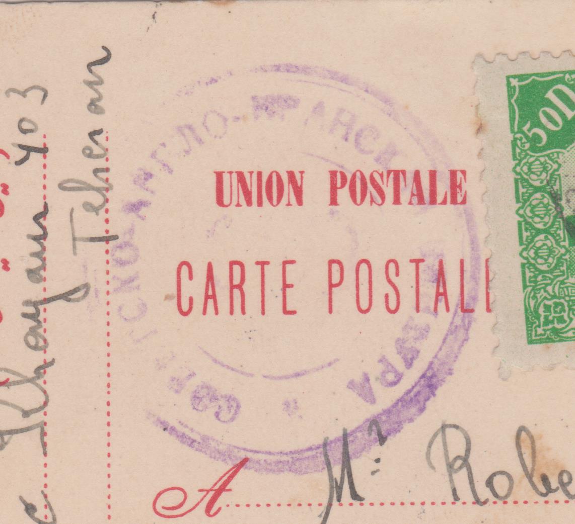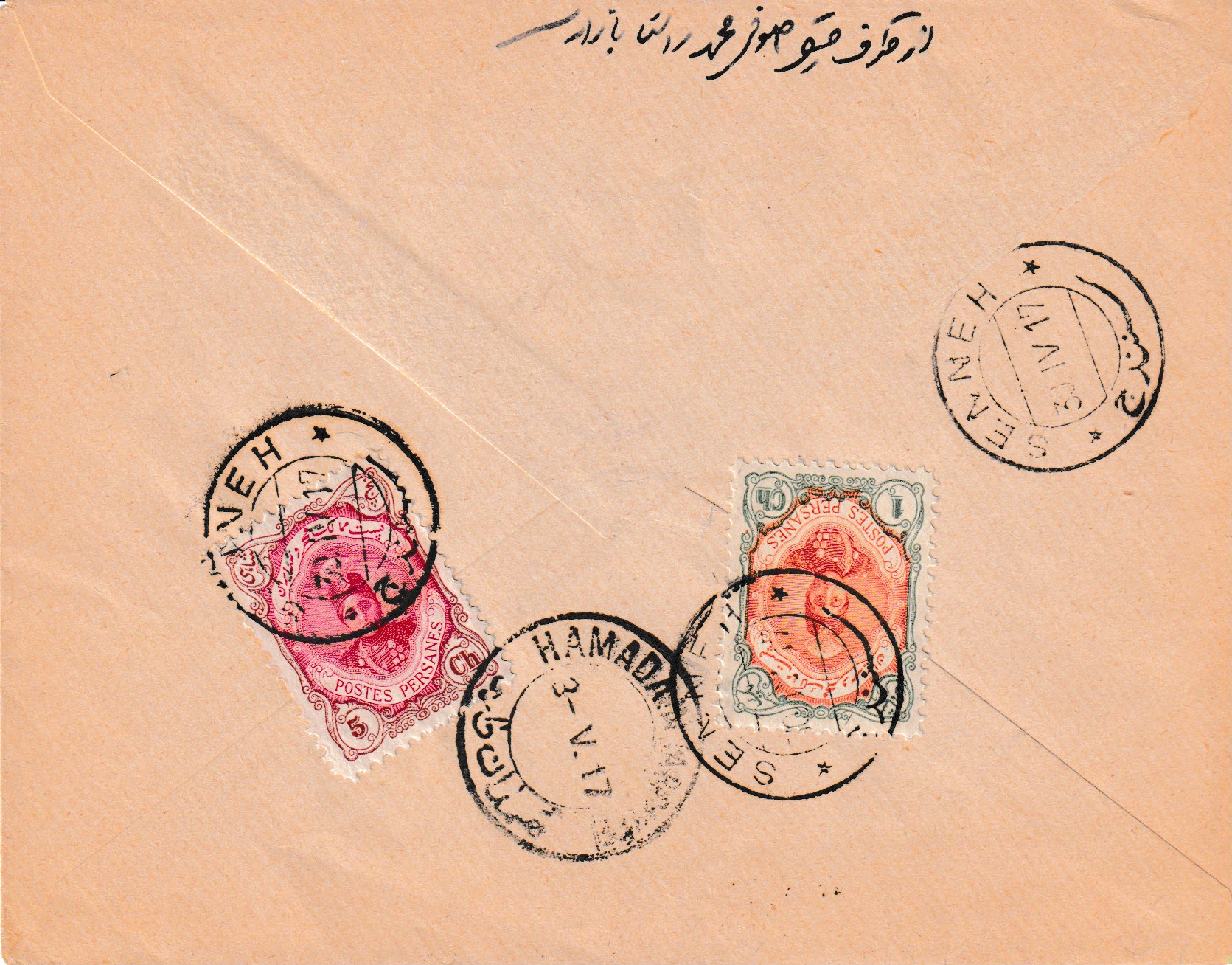 | Inlandbrief von Seneh nach Hamadan, Ankunftsstempel 3.V.17
