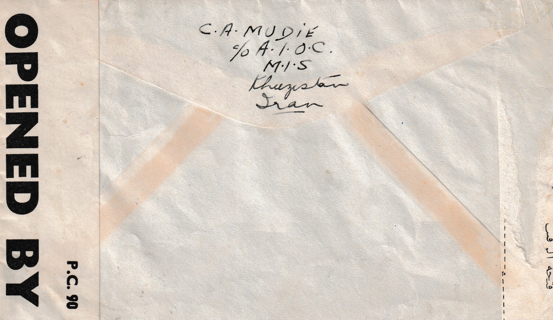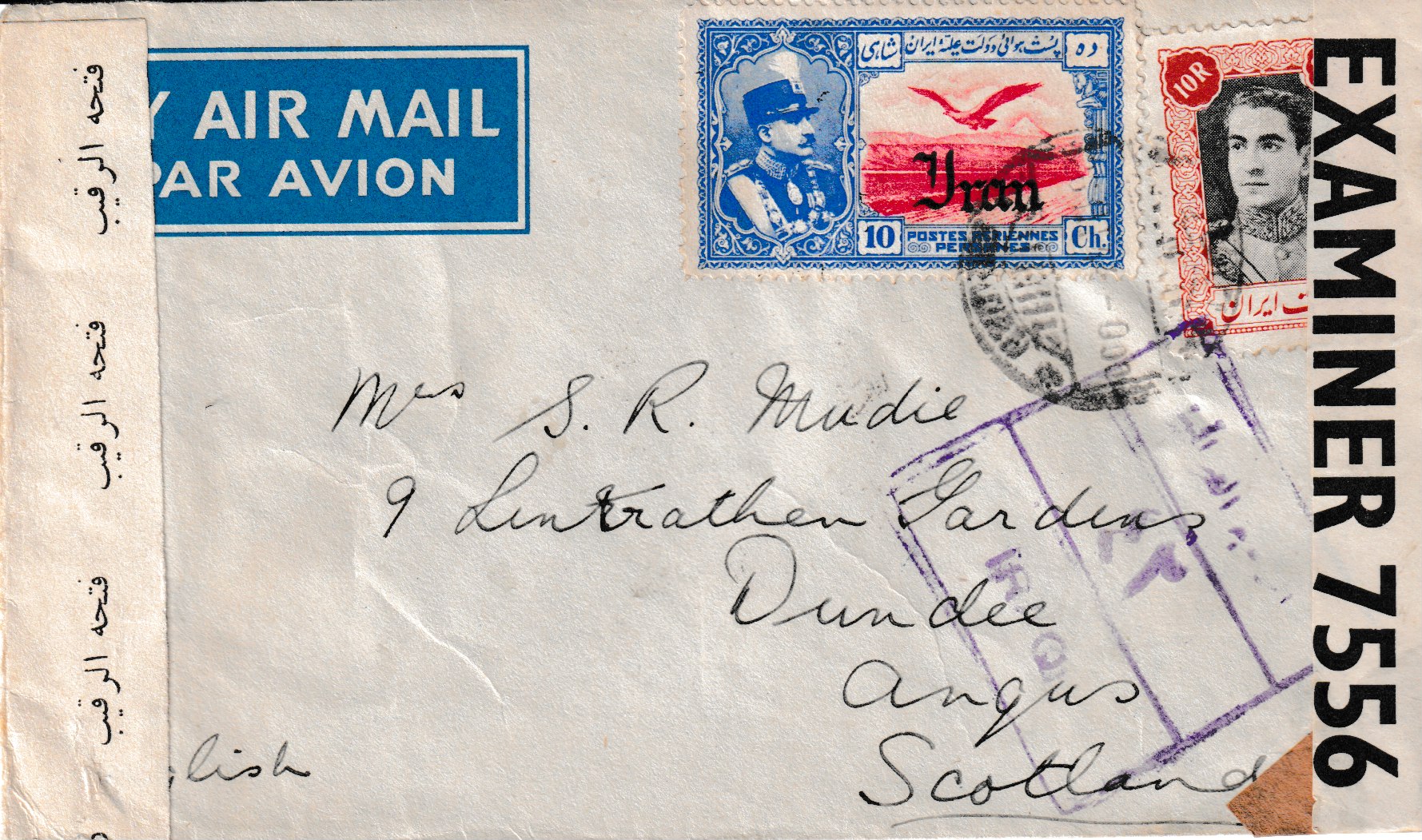 | Auslandsbrief von Abadan nach Dundie, Poststempel nicht lesbar