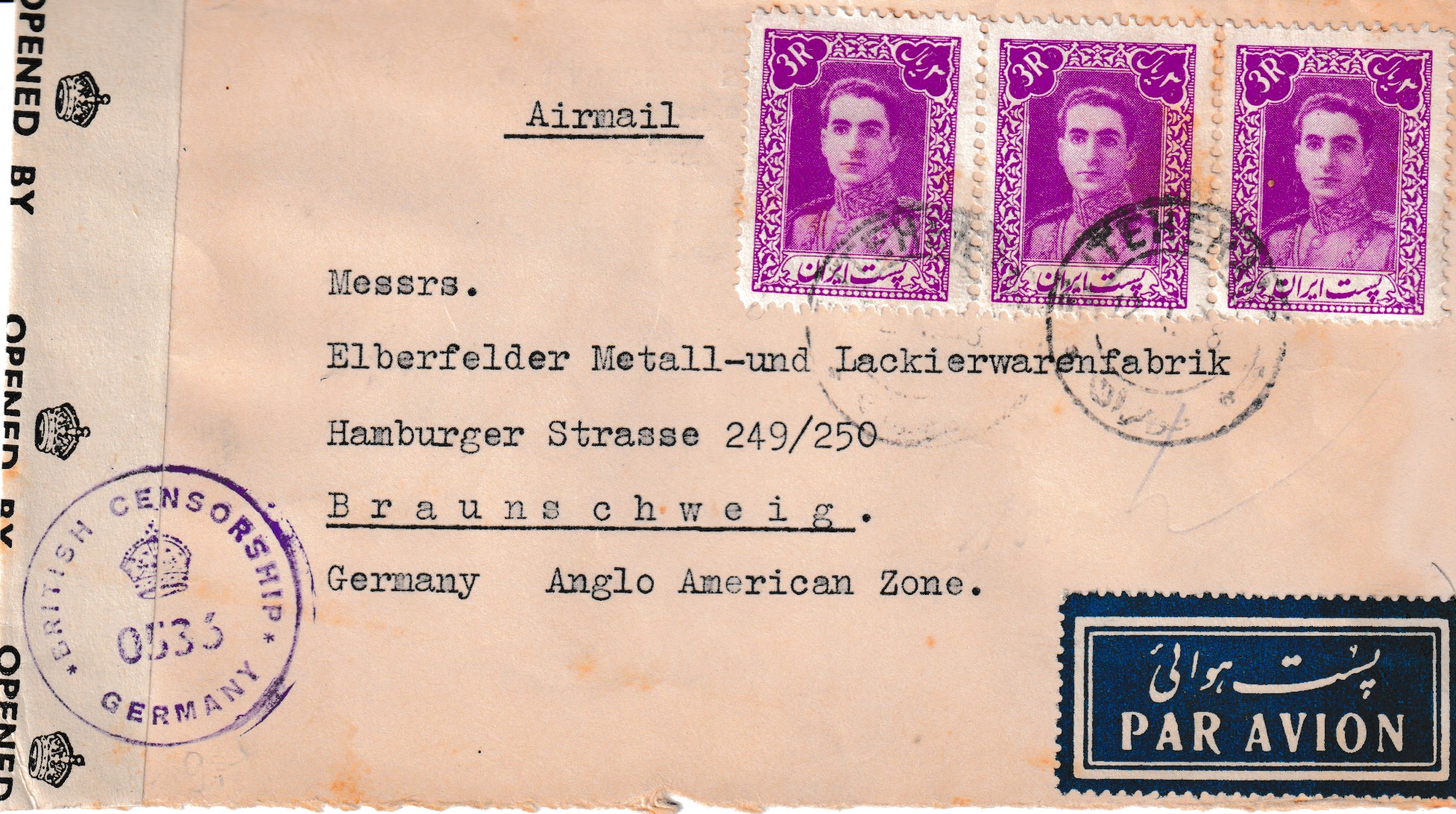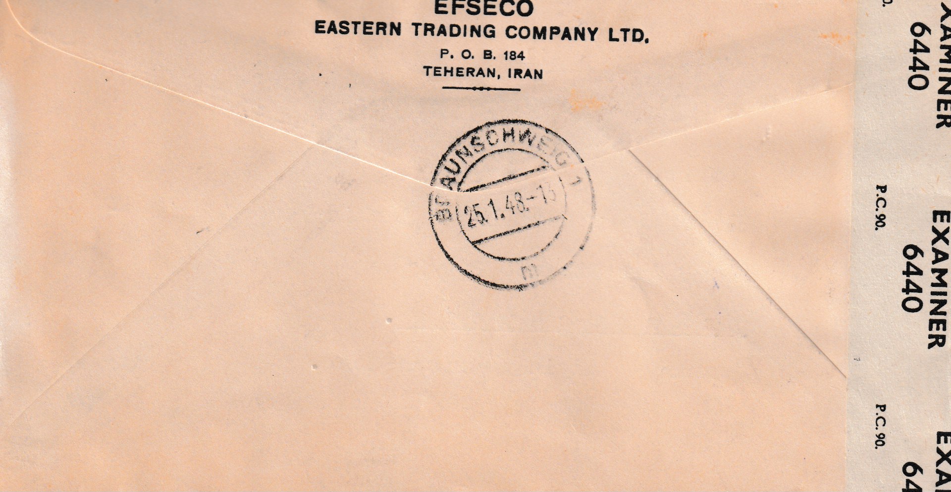 | Auslandsbrief von Teheran nach Braunschweig, Ankunftsstempel 25.1.48