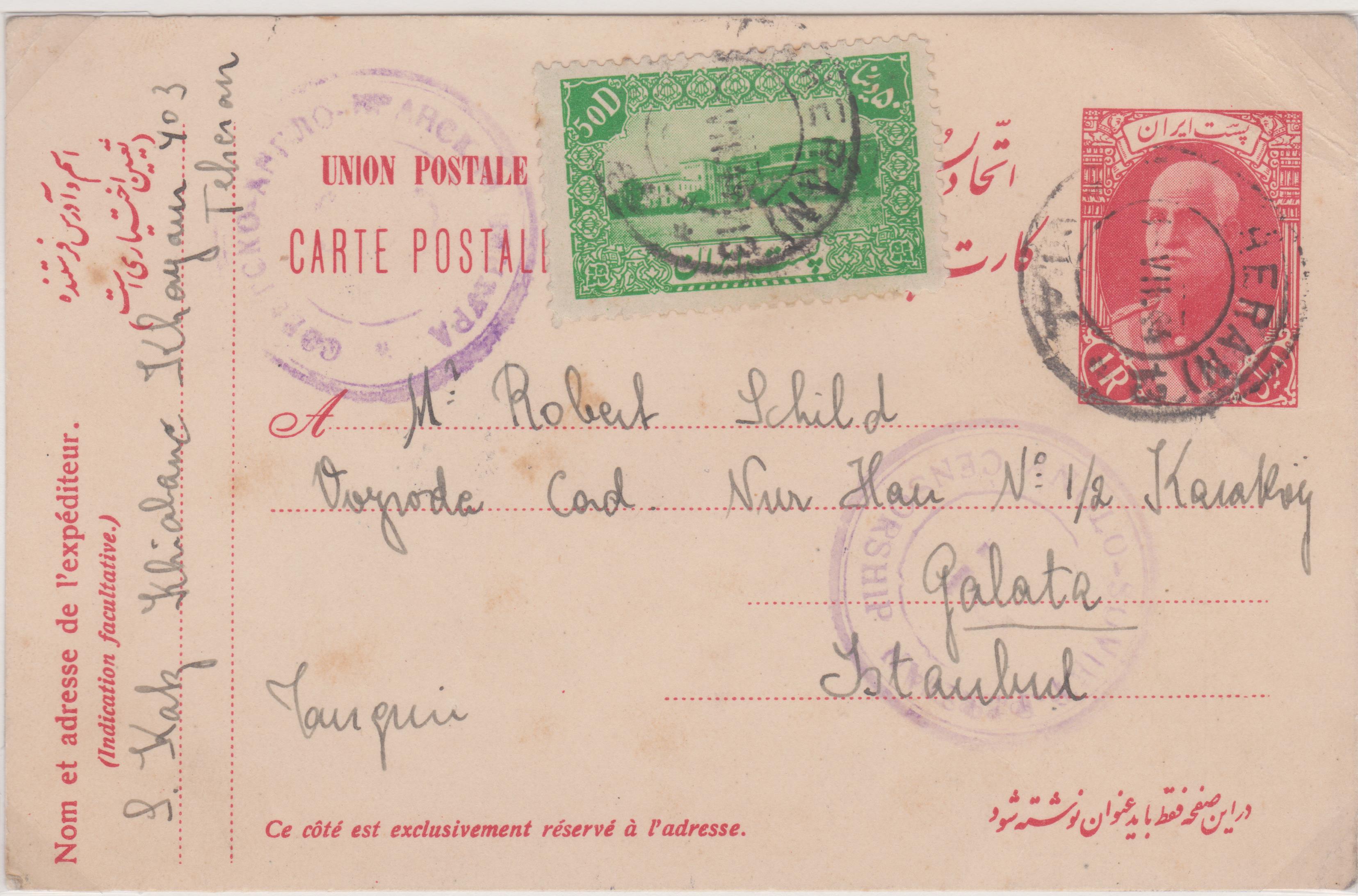 Auslandspostkarte von Teheran nach Galata / Istanbul
