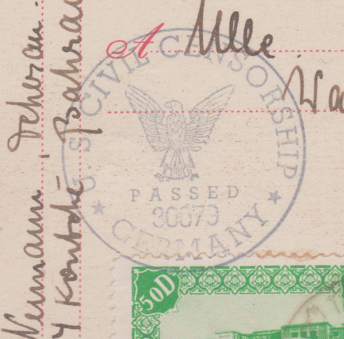 Nach der Besetzung Deutschlands im bzw. nach dem 2.Weltkrieg wurde die Postzensur von den Alliierten bis etwa 1952 weitergeführt