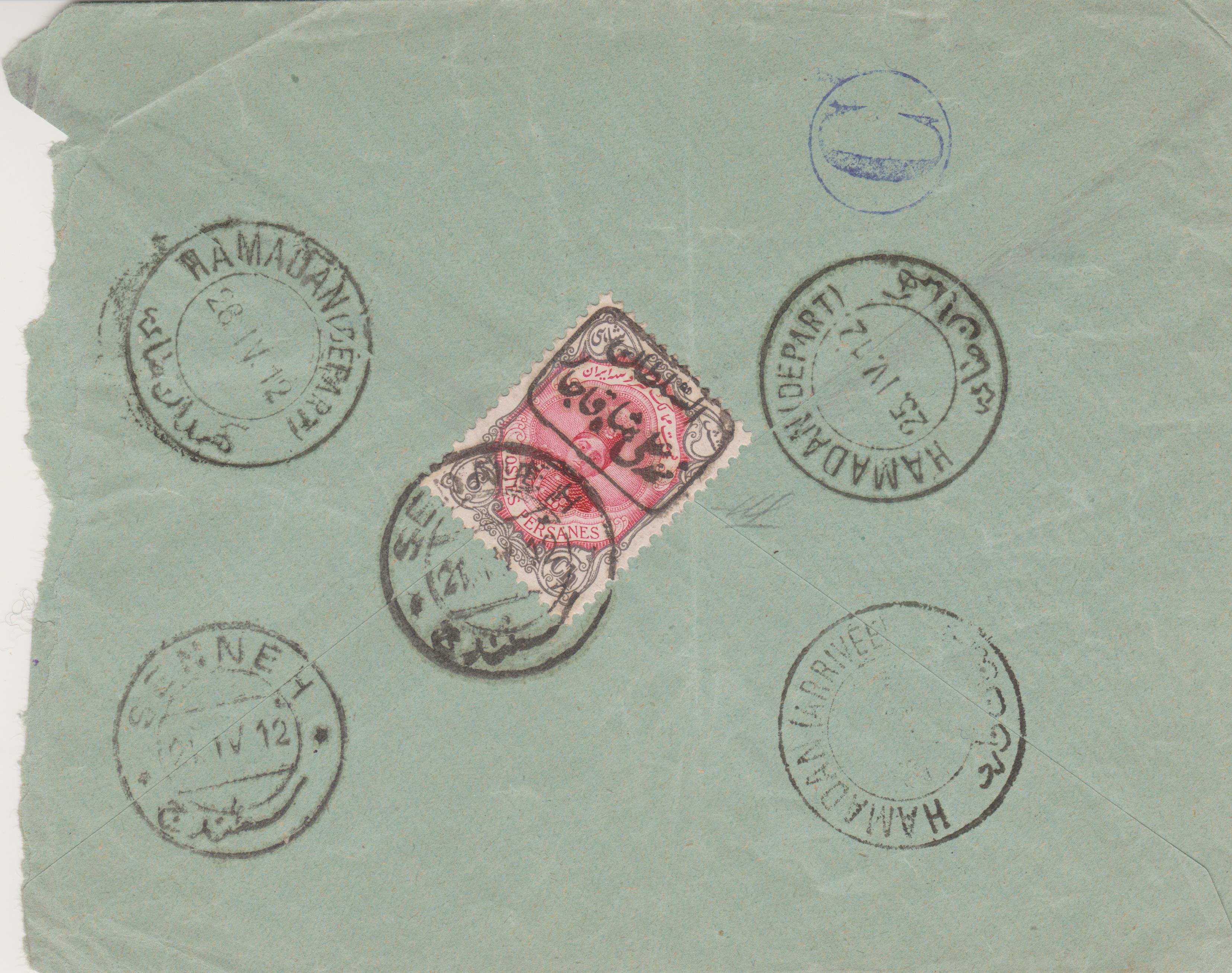 Inlandbrief von Senneh nach Hamadan, Aufgabestempel SENNEH am 21.IV.12, Ankunftsstempel 21.IV.12, ( ohne amtliche Verfügung Nr.6277 )