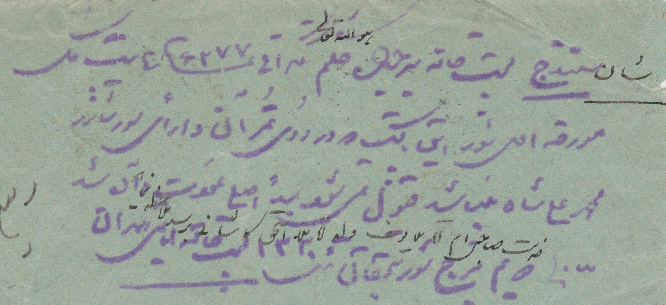 | Stempelaufdruck in Farsi AL SOLTAN MOHAMMAD ALI QAJDAR